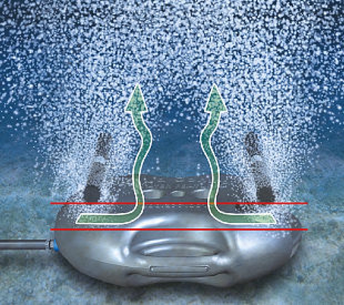 Aqua Control Aeration System спроектированы, чтобы перекачивать большие объемы воды со дна на поверхность, где она насыщается кислородом. Перекачивающее действие создается миллионами маленьких пузырьков, испускаемыми диффузором. Пузырьки растут и захватывают с собой воду. Трубки запатентованного диффузора AirPro оптимизирует перекачивающее действие. Циркулирующая вода вызывает приток к диффузору не аэрированной воды из придонной области, таким образом, происходит распространение аэрированной воды по всему водоему.