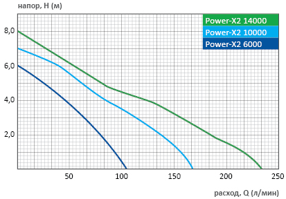 • возможность установки насоса вне водоема Гидравлические характеристики: